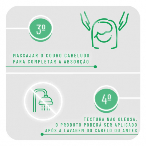 - Aplica 25 pressões no couro cabeludo seco ou húmido, uma vez por semana, distribuindo uniformemente pelas zonas afetadas