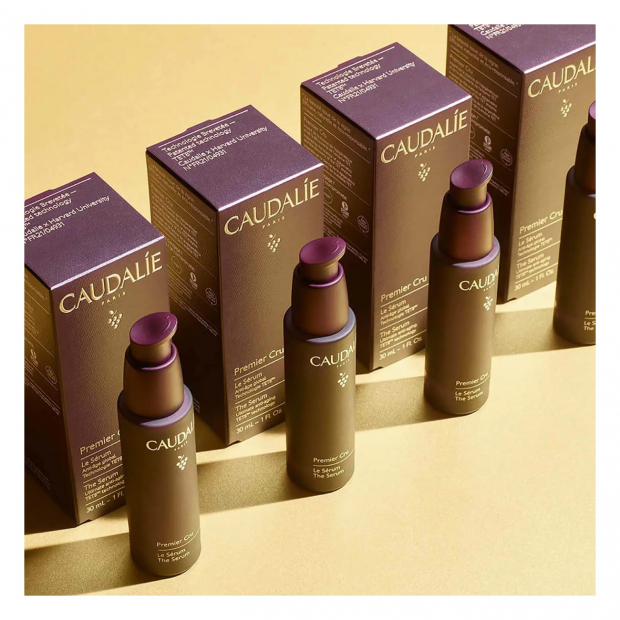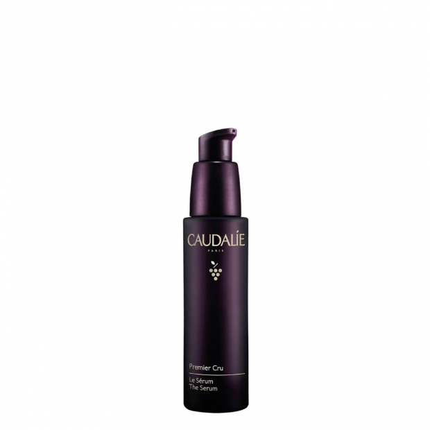 Caudalie Premier Cru Sérum tem uma textura fluida, com 98% de ingredientes de origem natural e uma embalagem em vidro reciclável, com um compromisso ecorresponsável.