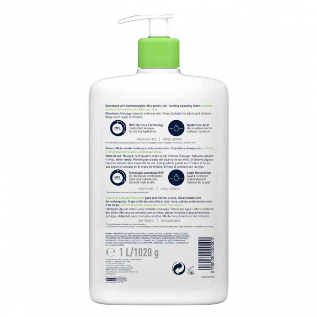 - Com 3 ceramidas essenciais (1, 3, 6-II) e ácido hialurónico para hidratar durante a limpeza