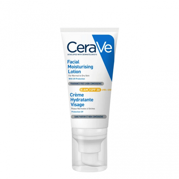 Cerave Loção Facial Hidratante e Protetora SPF30 tem uma textura leve e uma fórmula desenvolvida em conjunto com dermatologistas para a máxima eficácia e compatibilidade com a pele sensível.
