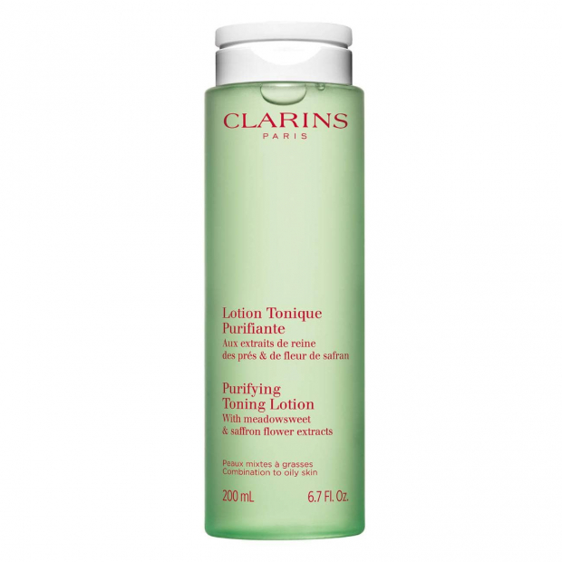 Clarins Lotion Tonique Purifiante Tónico tem uma fórmula que combina extratos de ulmária e flor de açafrão, para uma ação tonificante, hidratante, reequilibrante, purificante e suavizante.