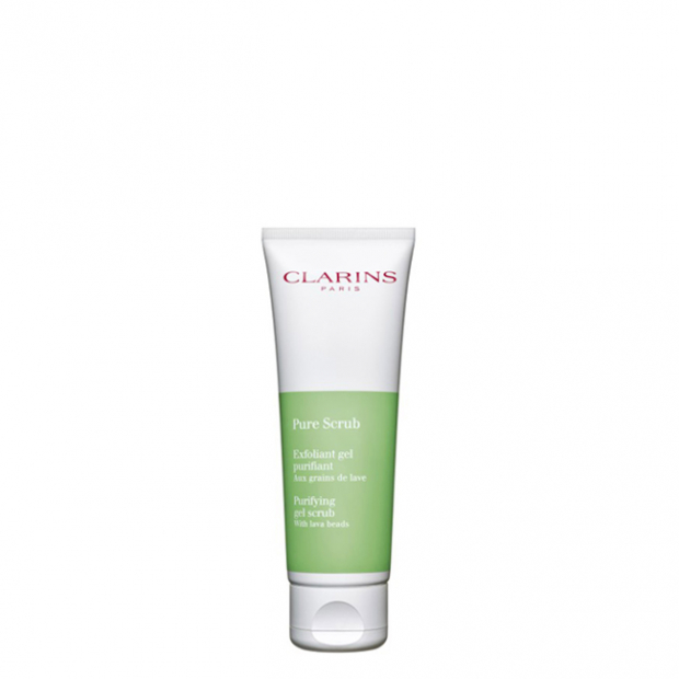 Clarins Pure Scrub Esfoliante Purificante tem uma textura em gel, com micro-grãos de rocha vulcânica enriquecidos com extrato de epilóbio, para uma ação esfoliante, matificante, suavizante, purificante, aperfeiçoadora e alisadora.