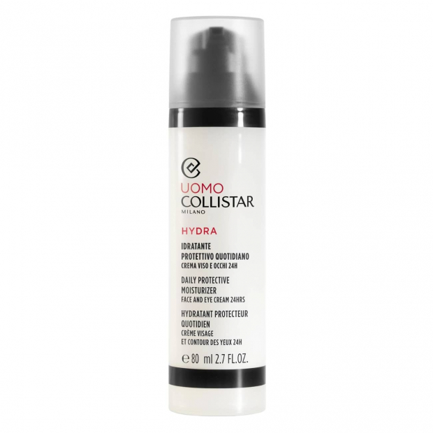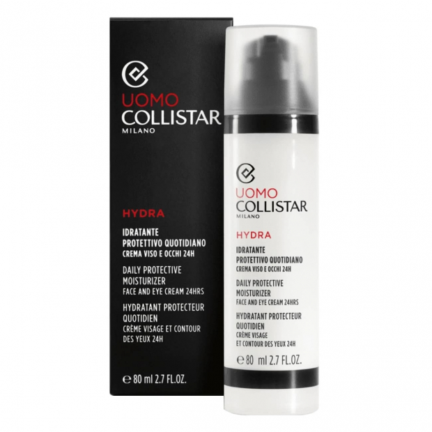 Collistar Homem Hydra Creme tem uma textura rica e confortável, numa embalagem sustentável e uma fórmula amiga do ambiente com Hydra Face&Eye, um complexo que proporciona hidratação intensa, reduz o envelhecimento digital e os sinais de cansaço do rosto e olhos. Associa ácido hialurónico e vitamina E para um efeito hidratante e antioxidante.