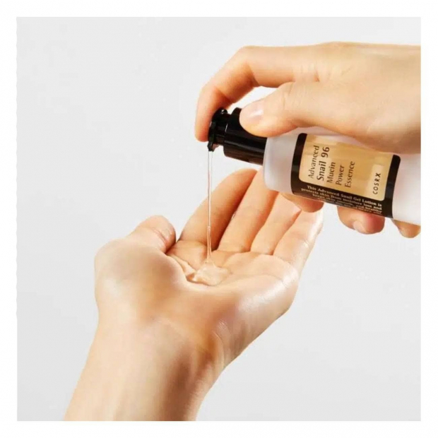 Cosrx Advanced Snail 96 Mucin Power Essence é um fluido aquoso leve e facilmente absorvido, para usar depois do tónico.