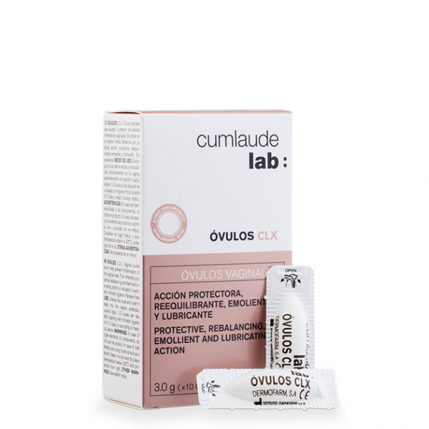 Cumlaude Lab Óvulos Vaginais CLX são óvulos formulados com clorohexidina, glicerina, hialuronato de sódio e ácido lático para uma ação hidratante, protetora e reequilibrante.