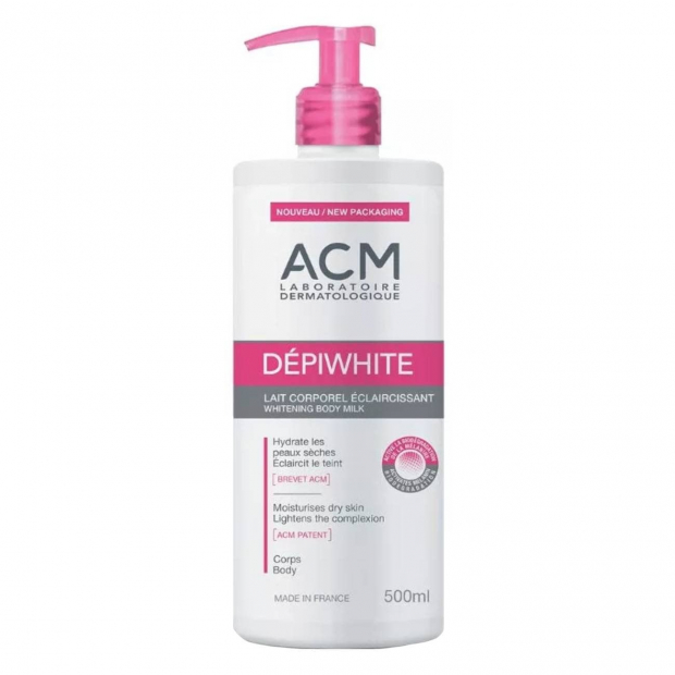 ACM Dépiwhite Leite Corporal Anti-Manchas tem um textura fluida, de rápida absorção, sem sensação oleosa.