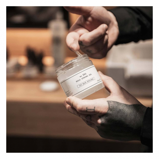 Aplica Depot Nº304 Gel Fixação Forte uniformemente sobre o cabelo húmido ou seco.