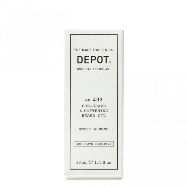 Se tens dificuldade com irritações durante o barbear ou desejas suavizar a barba, o Depot Nº403 Sweet Almond Óleo é um óleo versátil e de alta qualidade, especialmente formulado para preparar a pele e a barba.