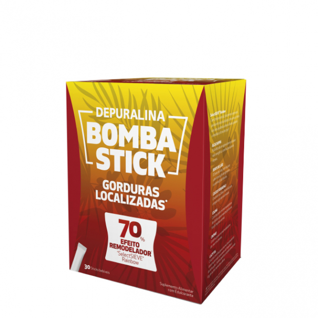 Depuralina Bomba Stick é um suplemento em pó queima-gorduras, que atua nas gorduras localizadas (anca, cintura e coxas) para ajudar na perda de peso.