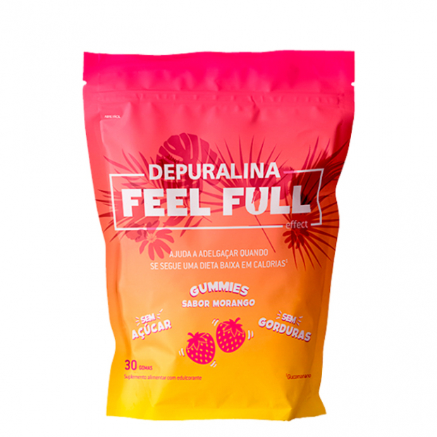 Tomar 1 a 2 gomas de Depuralina Feel Full Gummies, 3 vezes por dia, com bom copo de agua (200-250ml) antes das refeições.