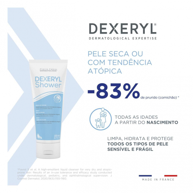 Para quem tem pele sensível e atópica, que precisa de um creme de duche suave e sem sabão, Dexeryl Creme Duche é o mais indicado.