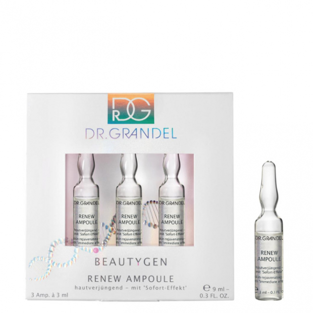 Dr Grandel Beautygen Renew é um concentrado intensivo em ampolas, que rejuvenesce, dá firmeza e suaviza instantaneamente a tez.