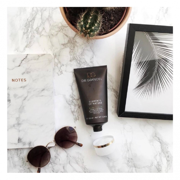 Dr. Grandel Elements of Nature Creme de Corpo tem uma textura suave e uma fórmula repleta de óleos essenciais e outros ingredientes naturais adequados para pele sensível.