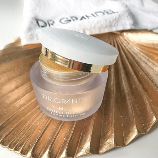Dr Grandel Timeless Décolleté tem uma textura suave, com uma combinação de extrato de faia, colagénio e extrato de mirra, para uma ação anti-idade, reafirmante, tonificante, estimulante e suavizante.