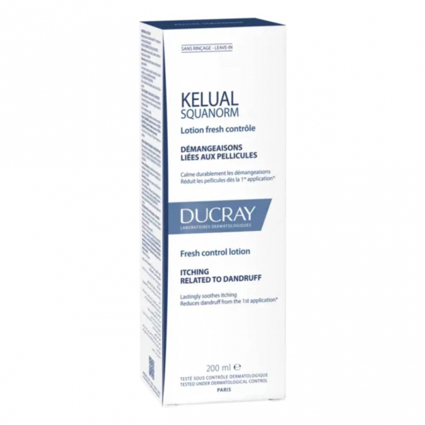 Reduz a caspa e acalma o desconforto no couro cabeludo com Ducray Kelual-Squanorm Loção Fresh Control!