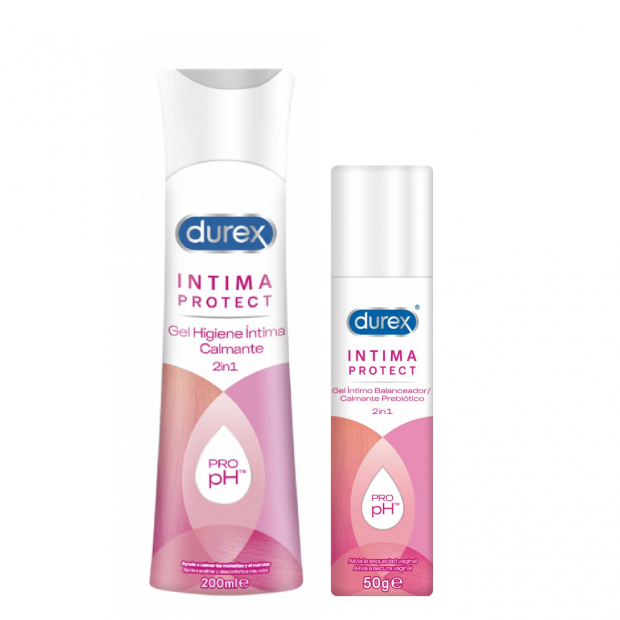 Durex Intima Protect Kit é um kit que contém 2 cuidados íntimos: 1 gel calmante (50g) e 1 gel higiene íntima (200ml).