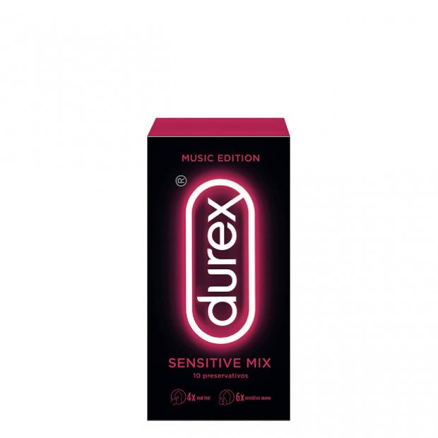 Durex Music Edition Sensitive Mix é um pack com um mix de diferentes preservativos de máxima qualidade, com efeito estimulante.
