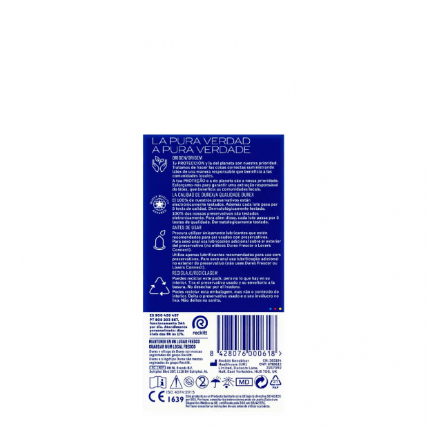 Verifica a data de validade dos Durex Preservativos antes de utilizar e segue sempre as instruções que se encontram no folheto informativo que acompanha a embalagem.