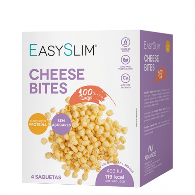 Easyslim Cheese Bites é um snack com 119kcal por saqueta (contém 4 saquetas).
