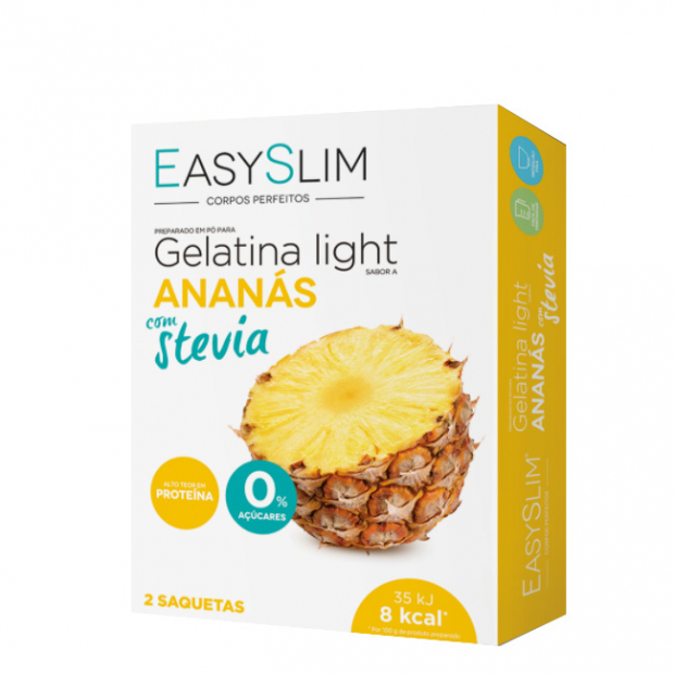Para aumentar a sensação de saciedade pode adicionar a gelatina a iogurtes ou frutas. As gelatinas são recomendadas em qualquer uma das fases da Dieta EasySlim. Esta gelatina é recomendada como complemento de um programa de emagrecimento para auxiliar a perda de gordura e manutenção da massa muscular. As gelatinas Easyslim devem fazem parte de um regime alimentar variado não sendo recomendada como substituto à refeição. Sabor a ananás.