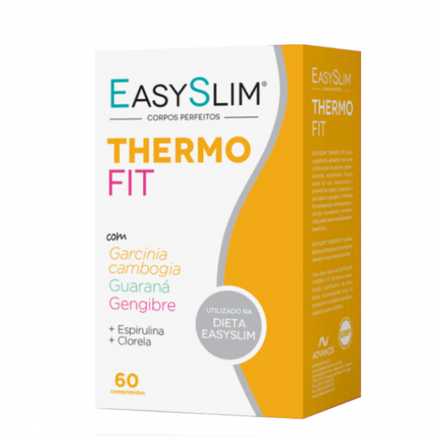 Easyslim Thermo Fit tem um complexo de plantas com garcina cambogia, guaraná, gengibre, spirulina e clorela para reduzir gordura localizada e uma ação detox intensa.