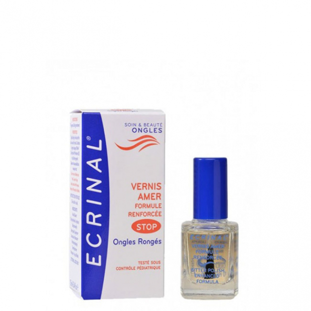 Ecrinal Verniz é um verniz de sabor amargo, que ajuda a combater o vício de roer as unhas. De cor transparente, deixa um sabor amargo nas unhas que impede o ato de roer as unhas. Protege as unhas de infeções e facilita a sua recuperação. Não tóxico, sem formaldeído e sem tolueno.