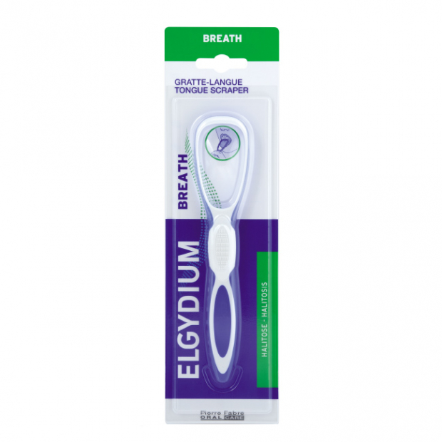 Utilizar Elgydium Breath Raspador Língua diariamente, depois da escovagem dos dentes. Começar pela aresta rígida e raspar a superfície da língua, da base até à ponta. Repetir o processo com a aresta de borracha macia. Passar o raspador por água a cada passagem na língua. No final, bochechar com água ou com colutório.
