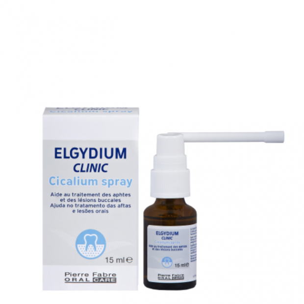 Elgydium Clinic Cicalium Spray é um cuidado protetor e cicatrizante para aliviar a dor e favorecer a regeneração no tratamento de aftas e outras lesões orais. O formato em spray permite uma aplicação extensa, em zonas de difícil acesso ou extremamente sensibilizadas. Indicado para crianças a partir dos 4 anos, adolescentes e adultos. Pode ser utilizado por grávidas e pacientes diabéticos.