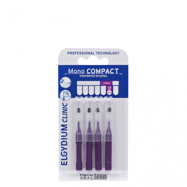 Elgydium Clinic Escovilhões Mono Compact Roxo têm diâmetro de 1.8mm para espaços interdentários muito largos. Com flexibilidade máxima de 90º, permite uma limpeza fácil em todas as zonas da boca.