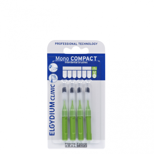 Elgydium Clinic Escovilhões Mono Compact Verde têm diâmetro de 2.2mm para espaços interdentários muito largos. Com flexibilidade máxima de 90º, permite uma limpeza fácil em todas as zonas da boca.