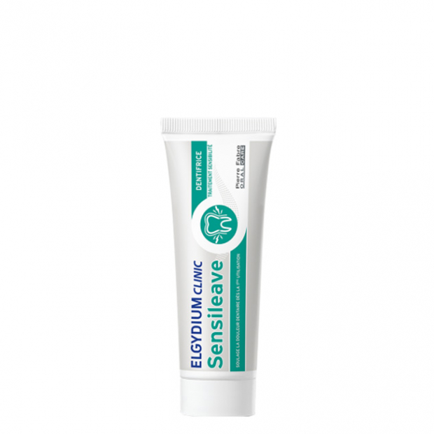 Elgydium Clinic Sensileave é uma pasta dentífrica que ajuda na higiene oral diária ao mesmo tempo que atenua a sensibilidade dentária. Proporciona um alívio imediato na dor da sensibilidade dentária. Cria uma camada protetora mais resistente e garante uma proteção ainda mais eficaz após 1 mês de utilização. Reforça e protege o esmalte para dentes mais fortes e saudáveis. Ideal para casos de hipersensibilidade dentária. Não é recomendada a sua utilização em crianças com menos de 12 anos e em mulheres grávidas.