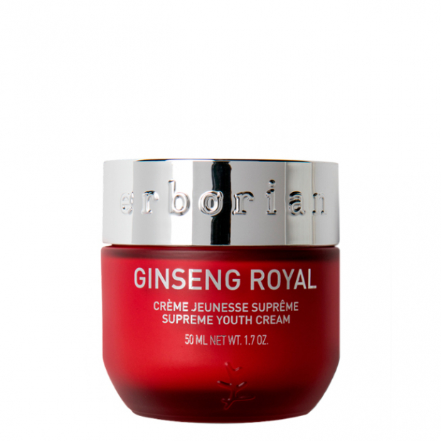 Erborian Ginseng Royal Creme tem uma textura cremosa rica, com uma combinação de ativos naturais: complexo de ginseng vermelho, extrato de alcaçuz, óleo de camélia, macadâmia, girassol e soja e tocoferol, para uma ação anti-idade, hidratante, suavizante, tonificante, antioxidante e fortificante.