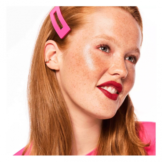 Este stick iluminador confere brilho à pele com partículas holográficas e um toque de cor de pêssego, perfeito para um look festivaleiro.