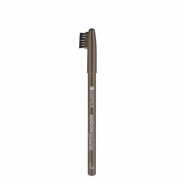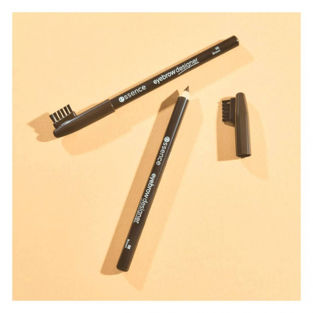 Essence Eyebrow Designer Lápis de Sobrancelhas inclui uma escova integrada para pentear e esbater, garantindo um acabamento uniforme e impecável.