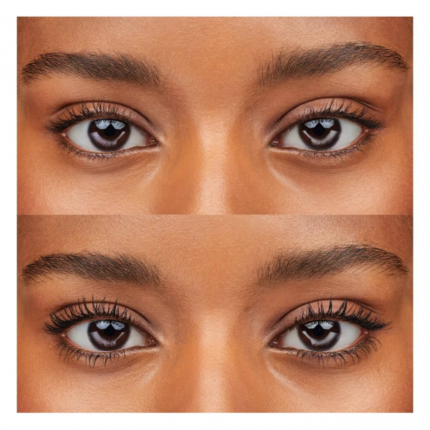 Máscara de pestanas preta para alongar e curvar as pestanas.