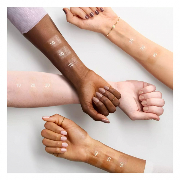 Com uma textura fluida e luminosa, esta base proporciona um efeito de filtro natural, uniformizando o tom da pele e conferindo um brilho saudável.