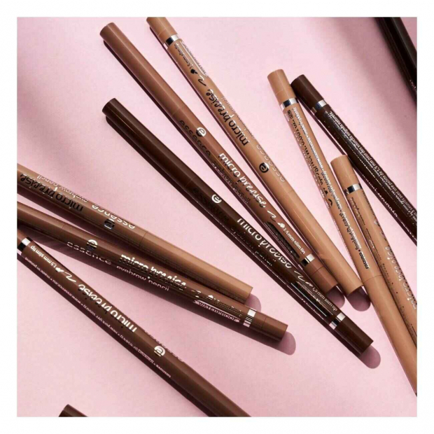 Essence Micro Precise Lápis de Sobrancelhas tem uma fórmula cremosa e um acabamento mate à prova de água.
