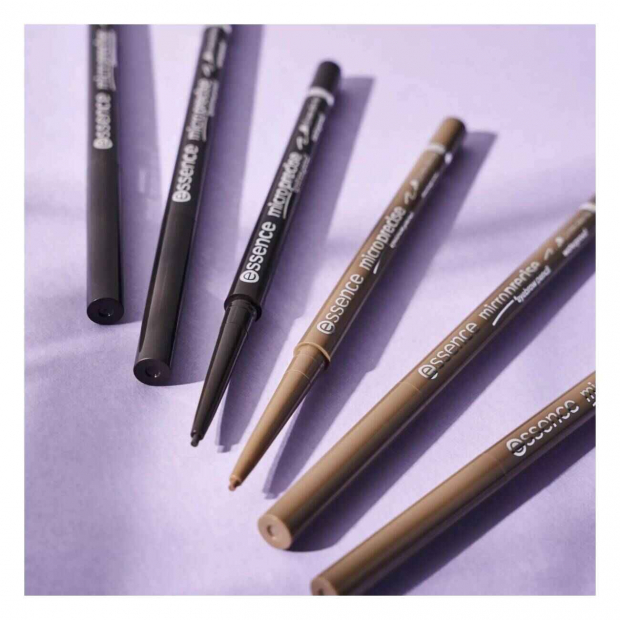 Essence Micro Precise Lápis de Sobrancelhas tem uma fórmula cremosa e um acabamento mate à prova de água.