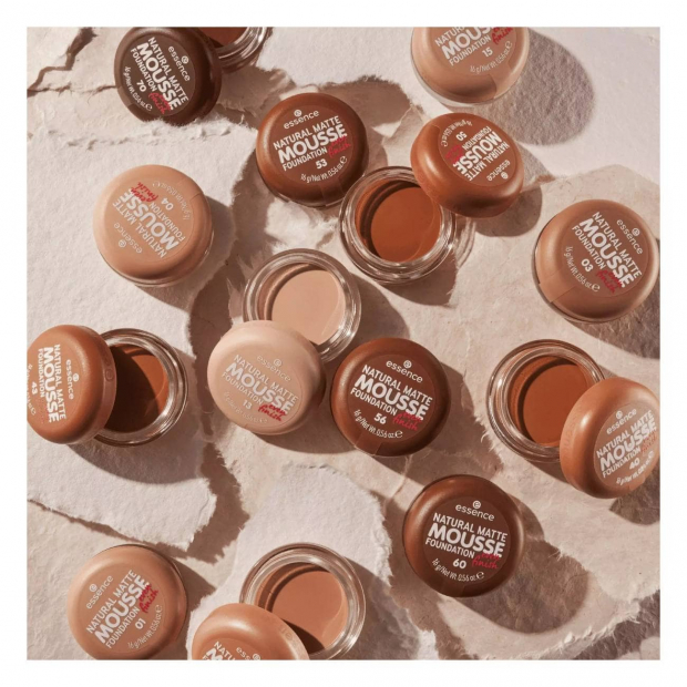 Se procuras uma base leve com acabamento mate natural, a Essence Natural Matte Mousse é a escolha perfeita.