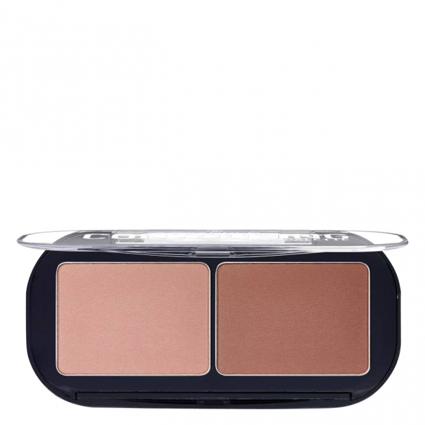Essence Paleta de Contorno Contouring Duo tem uma textura macia e fácil de esfumar e um acabamento mate natural.