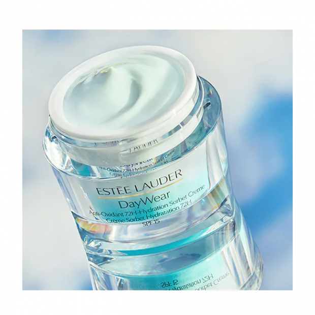 Estée Lauder Daywear Anti-Oxidant 72h Creme Hidratante SPF15 tem uma textura em creme-gel sobert, leve e de rápida absorção, com vitaminas C e E, complexo superoxidante, filtros UV, ácido hialurónico, esqualano, glicerina, extratos de semente de uva e goiaba, para uma ação protetora, revitalizante, hidratante e suavizante.