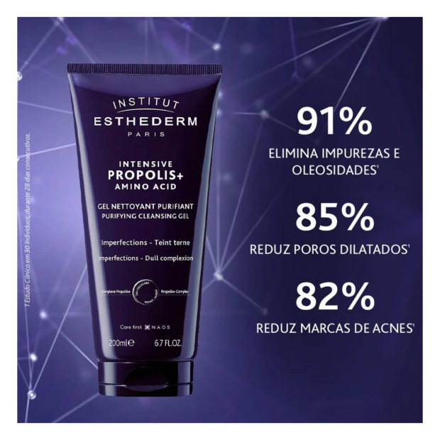 - 0.75% de extrato de própolis para limpar e purificar a pele com imperfeições