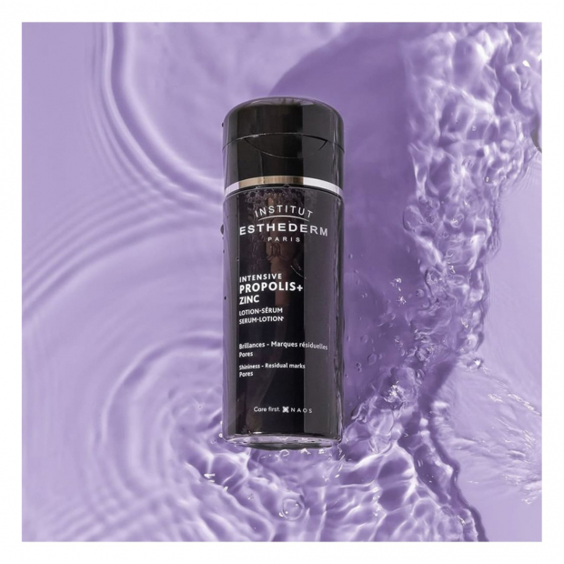 Esthederm Intensive Própolis + Zinco Loção tem uma fórmula leve, de rápida absorção, com: