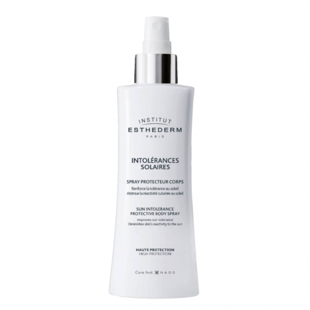 Esthederm Solaire Intolérances Solaires Spray tem uma textura leve e fundente, com ingredientes ativos suaves, sistema filtrante UVA e tecnologia de proteção celular global, para uma ação hidratante, fortificante, anti-manchas, protetora, estimulante e bronzeadora. A pele fica perfeitamente protegida, fortificada, com um bronzeado uniforme e luminoso.