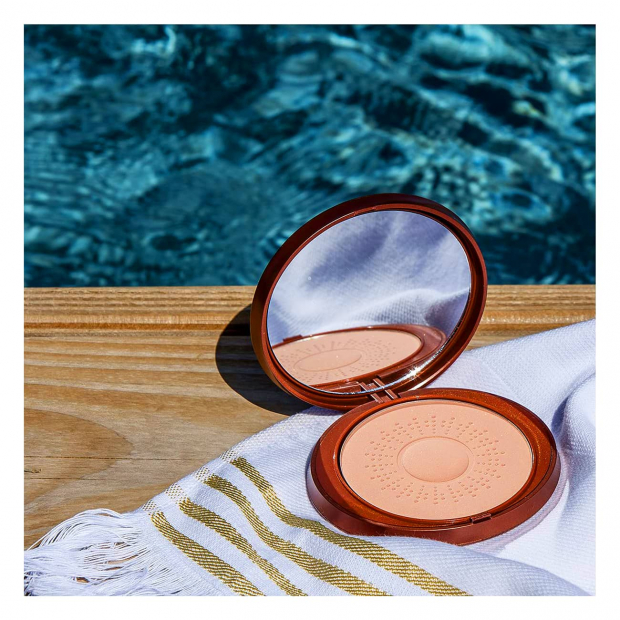 Esthederm Solaire Poudre Ensoleillante Pó tem uma textura em pó leve, com uma combinação de filtros solares de elevado espectro e pós leves, para uma ação protetora, antioxidante e suavizante.