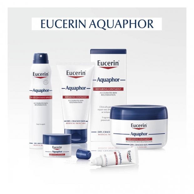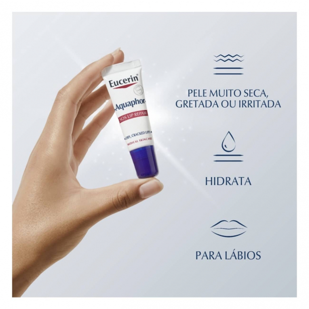 Combate os lábios secos e gretados com Eucerin Aquaphor Pomada Labial Reparadora.