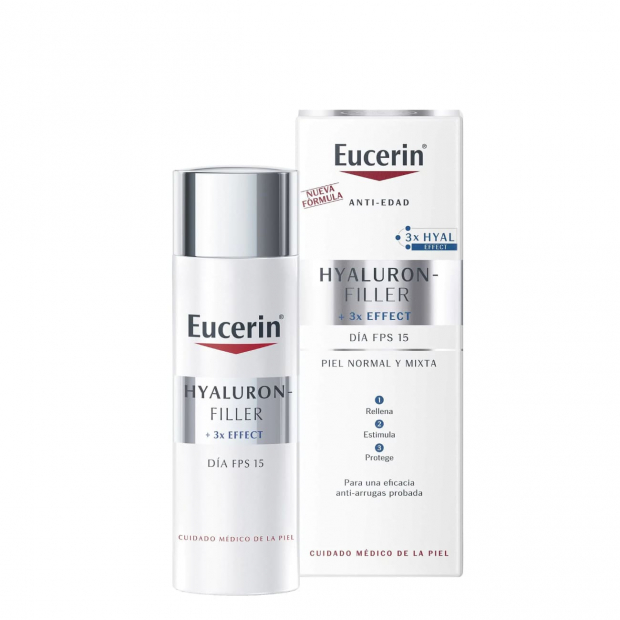 Eucerin Hyaluron-Filler Dia SPF 15 Creme é um creme de dia antirrugas, especialmente indicado para pele mista a oleosa com as primeiras rugas.