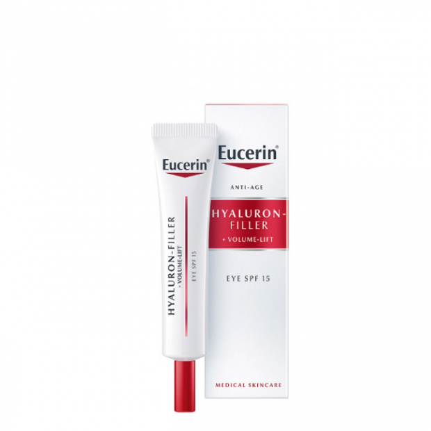 Eucerin Hyaluron Filler + Volume Filler Creme Olhos é um cuidado de olhos reafirmante e redensificante, com proteção solar, que rejuvenesce e dá volume à pele. Hidrata e preenche as rugas mais profundas. Reafirma intensamente e atenua a flacidez da pele. Melhora a perda de volume. Fortifica a rede de colagénio. Proporciona proteção média contra os raios UV (FPS15). Ideal para a pele delicada do contorno dos olhos. Oftalmologicamente testado.