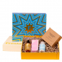 Um coffret que inclui um leite multifunções para melhorar a qualidade e a hidratação da pele do rosto, um óleo de corpo que proporciona uma nutrição intensiva, ao mesmo tempo que ilumina e um cuidado de mãos que nutre e repara intensamente.