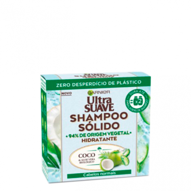 Garnier Ultra Suave Shampoo Sólido Coco e Aloe Vera é um shampoo sólido, com uma receita à base de plantas, que lava delicadamente, enquanto hidrata e cuida do cabelo.